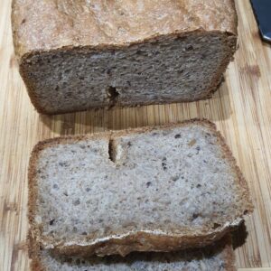 Z chlebem razowym nadal niski indeks i średni ładunek glikemiczny, kawa z odrobiną napoju owsianego niesłodzonego całość ok. 400 kcal.